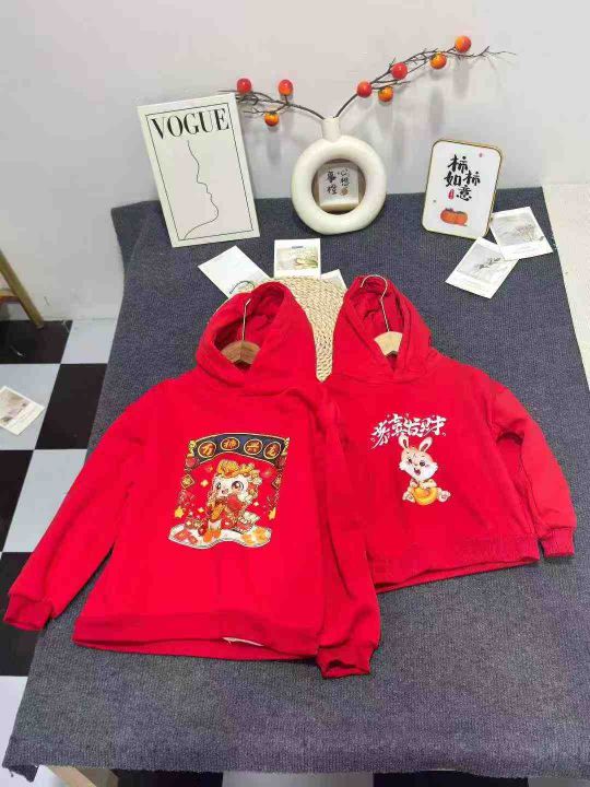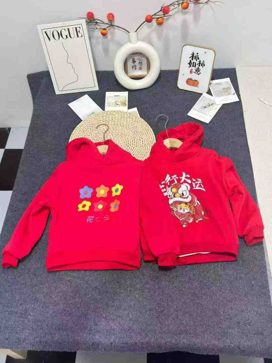 儿童冬季红色连帽卫衣女童宝宝加厚加绒上衣,数量198件,码数100-150,独立包装,全清5.5元