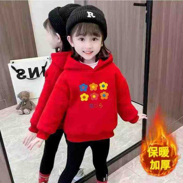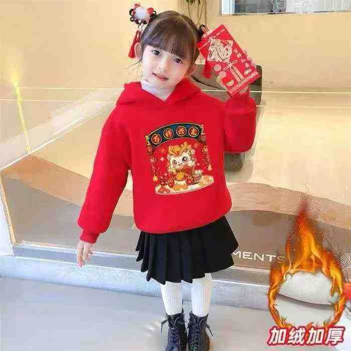 儿童冬季红色连帽卫衣女童宝宝加厚加绒上衣,数量198...