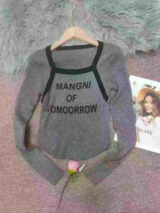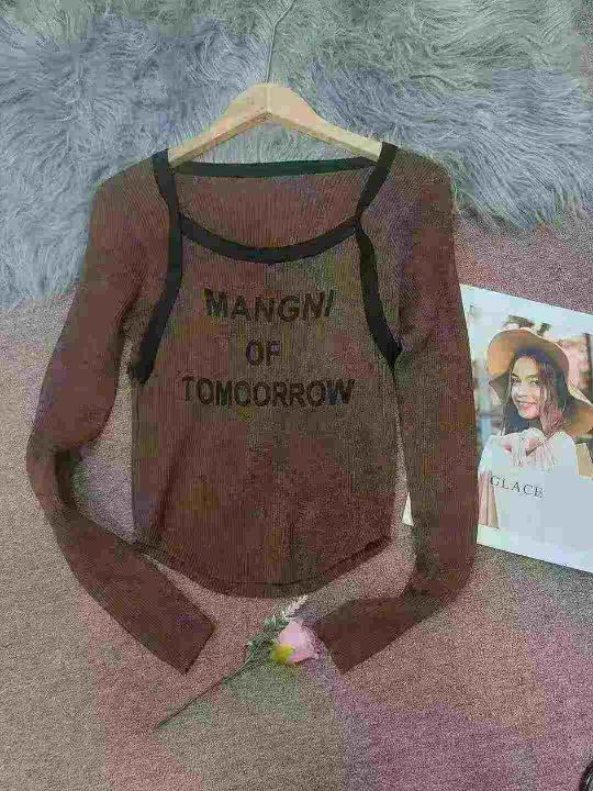美式时髦拼色假两件方领长袖早秋新款字母修身显瘦针织上衣,品质很好,独立包装,均码,400件,清6.5,分➕1