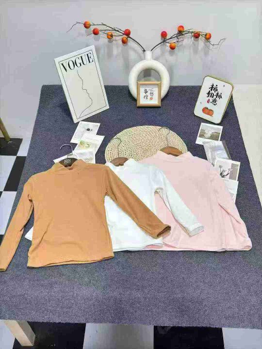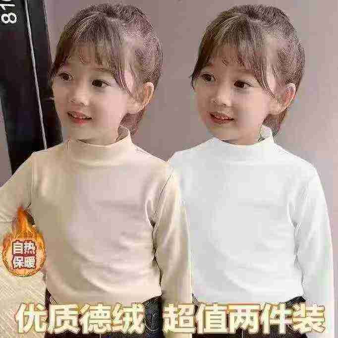 100件左右童装双面德绒半高领木耳边打底上衣!尺码90-170,高弹力,独立包...