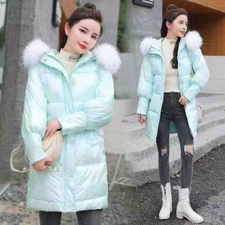 全清36.8元,免洗炫彩亮面羽绒棉棉衣女中长款,独立包...