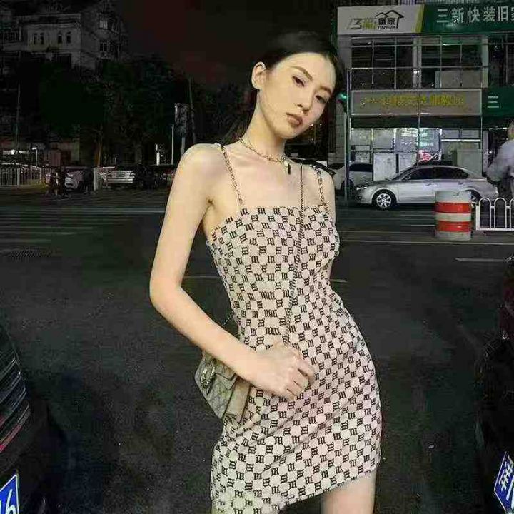 设计感链条吊带连衣裙女2025夏季新款性感气质修身显瘦格子包臀裙,271条,S-XL(1-4码,)独立包装,分货➕1(款号:0609#16)