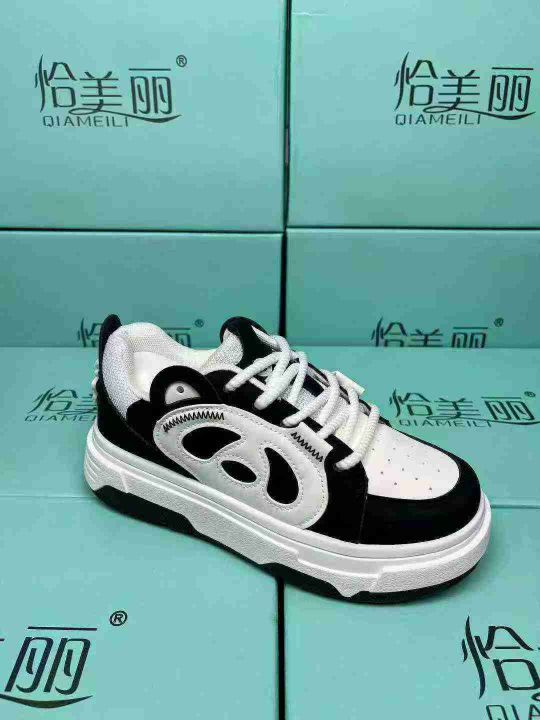 新款超迁贴皮双色底面包女鞋