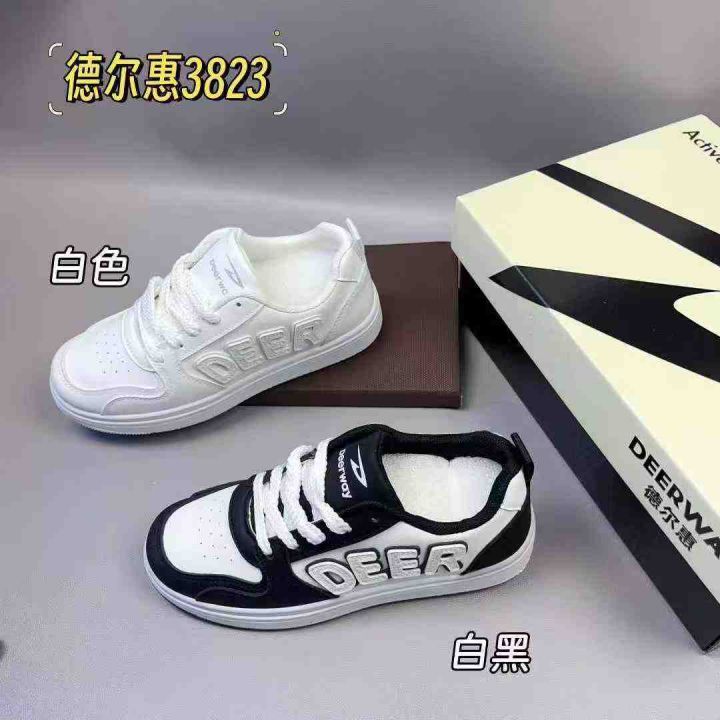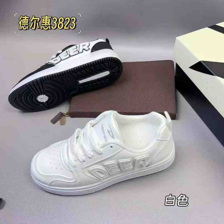 【德尔惠3823】新款双色底超纤板鞋白色200双/米色280/...