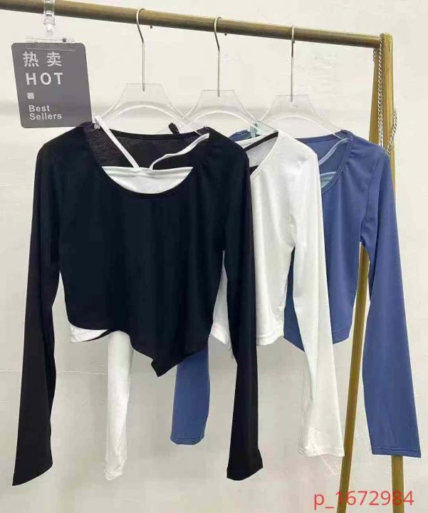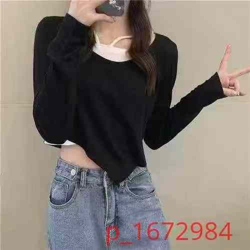 棉质假两件长袖66件7.5,面料柔软舒适高弹力,撞色拼...