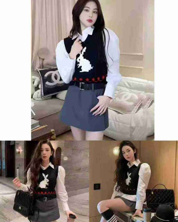 2025春季新款女毛织兔子提花针织马甲背心,品质很好,...