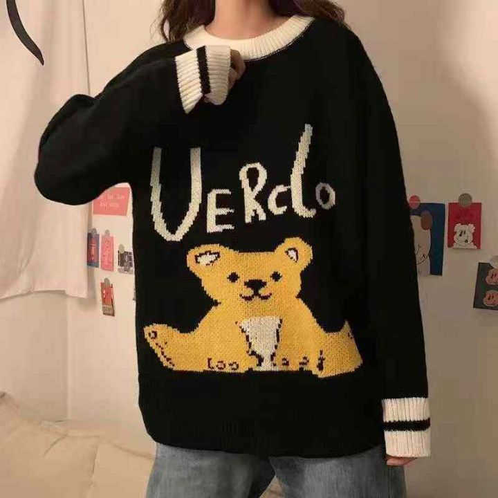 秋冬新款宽松慵懒风卡通提花圆领北极绒套头毛衣,独立...