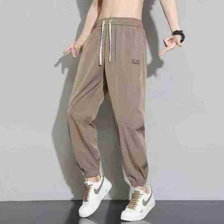 冰丝薄款休闲裤男2025夏季新款宽松透气束脚裤子男生速干运动长裤,整款3色,M-3XL,独立包装,货品干净,240件,6.8清,分货加1
