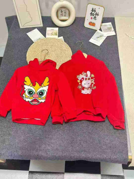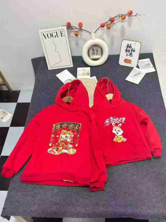 儿童冬季红色连帽卫衣女童宝宝加厚加绒上衣,数量198件,码数100-150,独立包装,全清5.5元