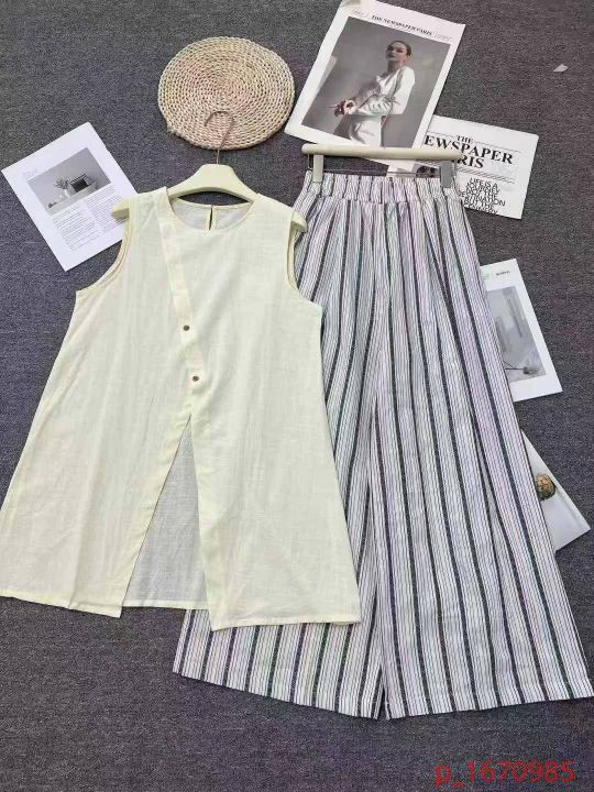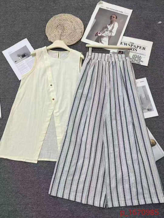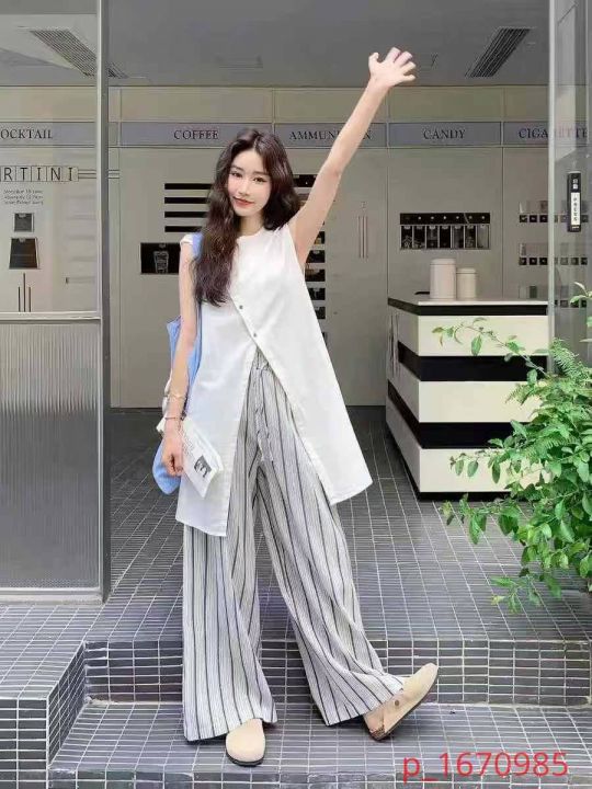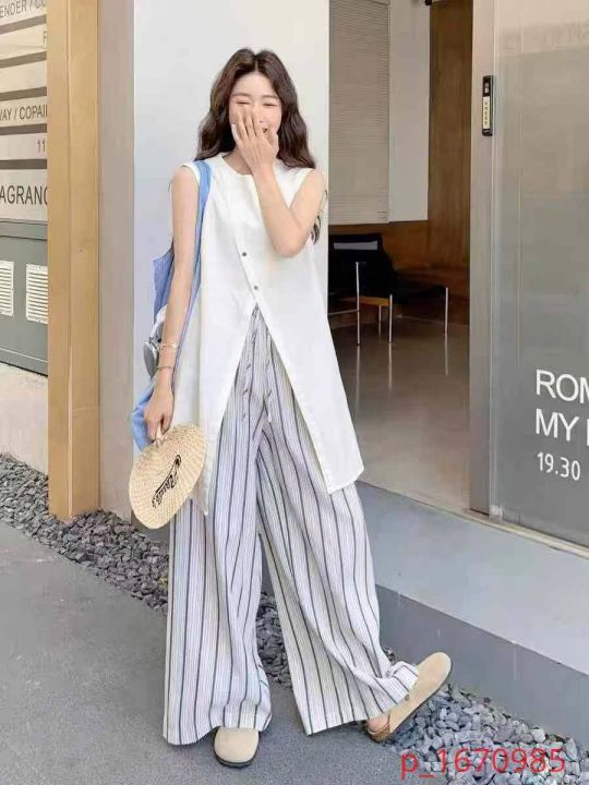 编号:[29439] ¥12.8元 女装/女士服装 套装/睡衣 运动服/休闲服 休闲服套装 夏日巨好看的一整套ootd穿搭套装女无袖开叉衬衫条纹休闲裤两件套夏日巨好看的一整套ootd穿搭套装女无袖开叉衬衫条纹休闲裤两件套S到XXL独立包装单款单色,超显龄清新干净套装Summer Super Stylish Full Set OOTD Outfit Women\'s Sleeveless Slit Shirt Striped Casual Pants Two-Piece Setمجموعة كاملة من الملابس النسائية الصيفية الأنيقة بدون أكمان مع قميص مشقوق وسروال رياضي مخطط 分货加:1 库存:184套