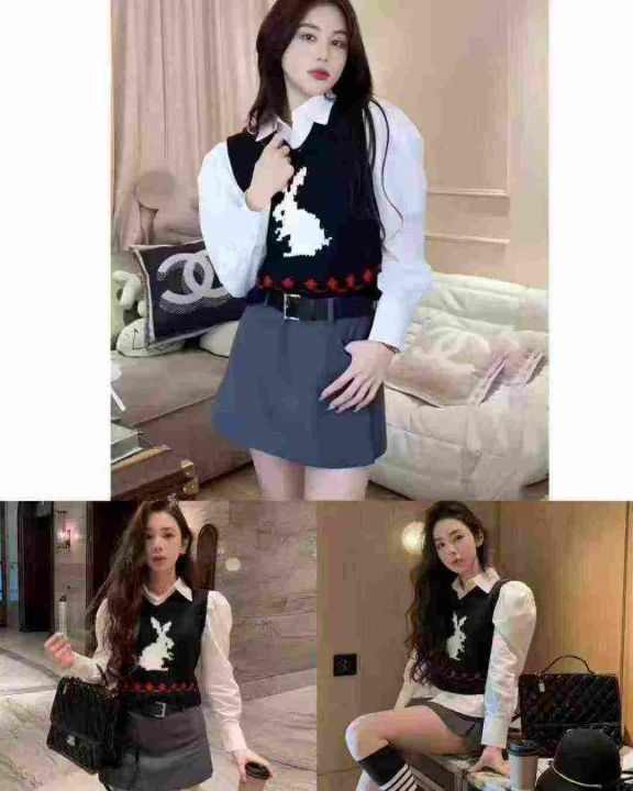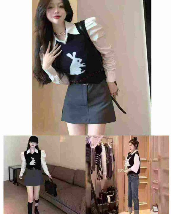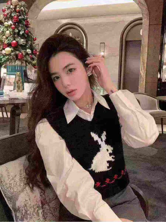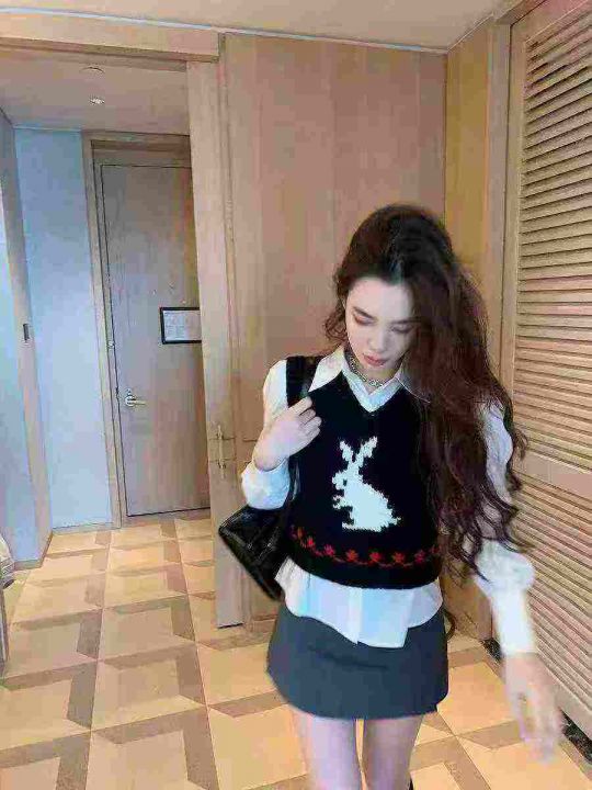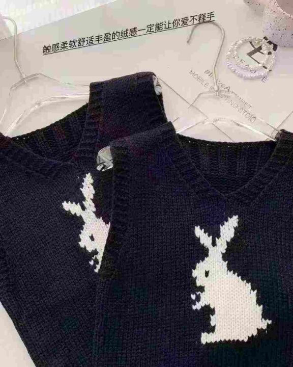 2025春季新款女毛织兔子提花针织马甲背心,品质很好,...