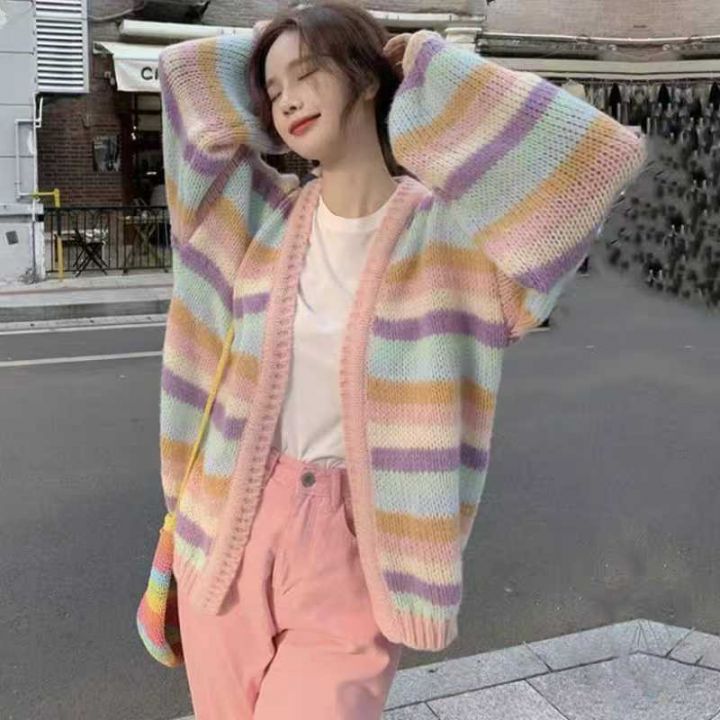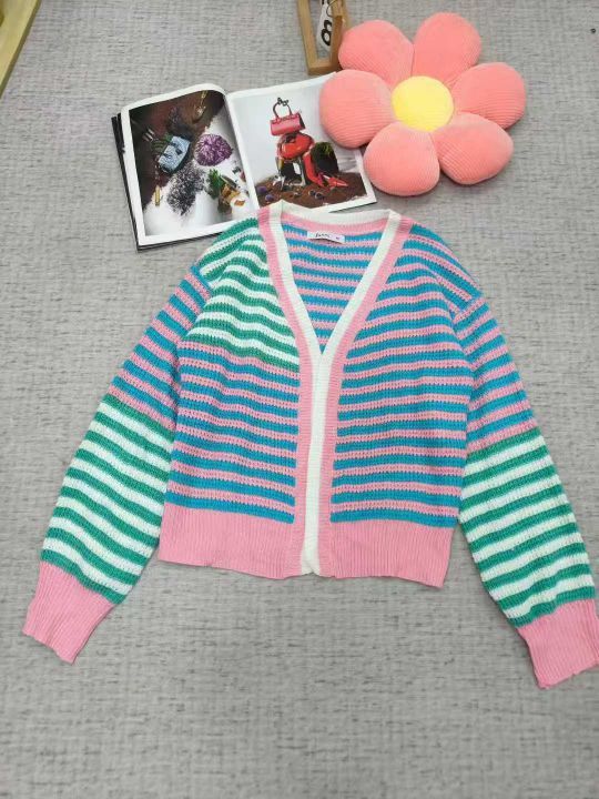 78件韩版春秋女装慵懒宽松时尚百搭条纹设计感小众针织开衫毛衣外套,独立包装,面料柔软货品干净,SML码