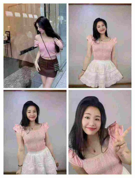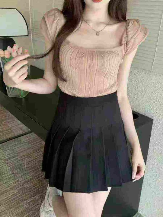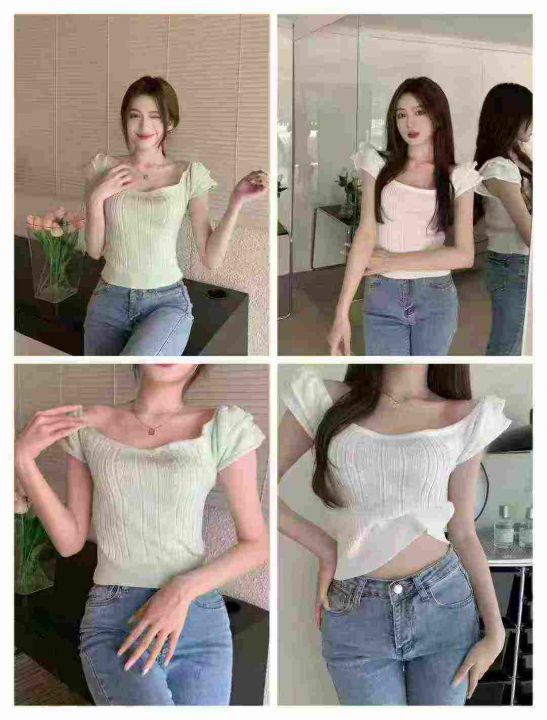 一字领泡泡短袖针织衫法式设计感小众性感短款露肩上衣,独立包装,均码,1120件,清6.5,分➕1