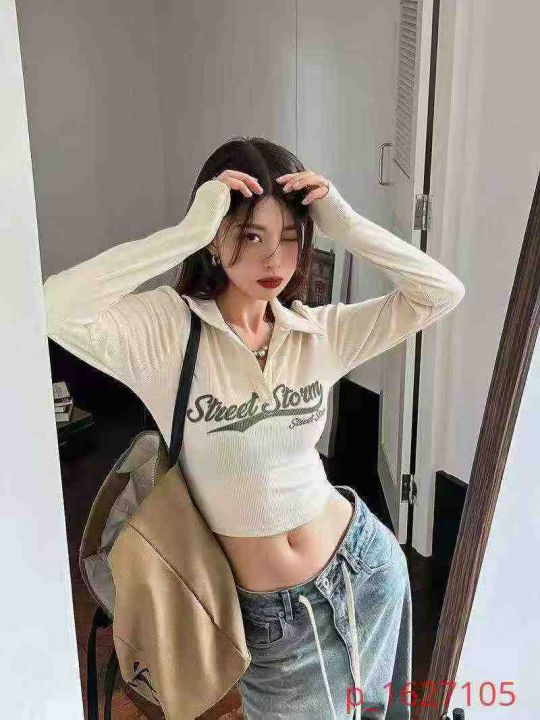 复古美式辣妹上衣296件5.9,面料柔软,高弹力,Polo领...