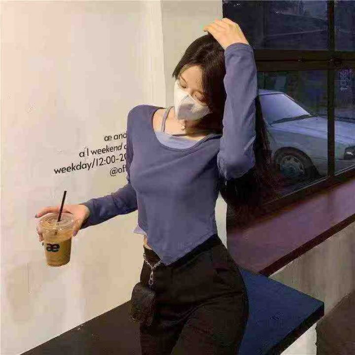 棉质假两件长袖66件7.5,面料柔软舒适高弹力,撞色拼...