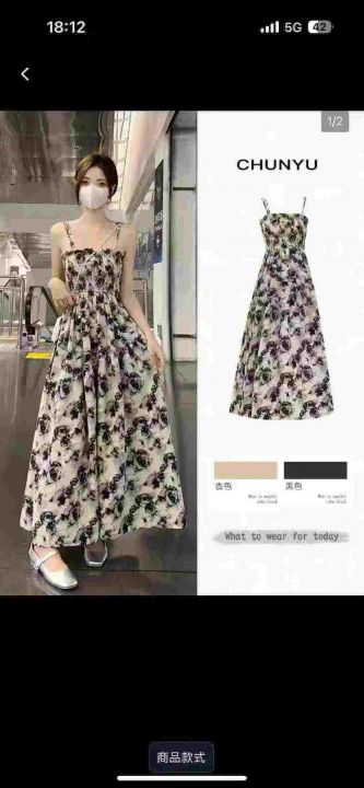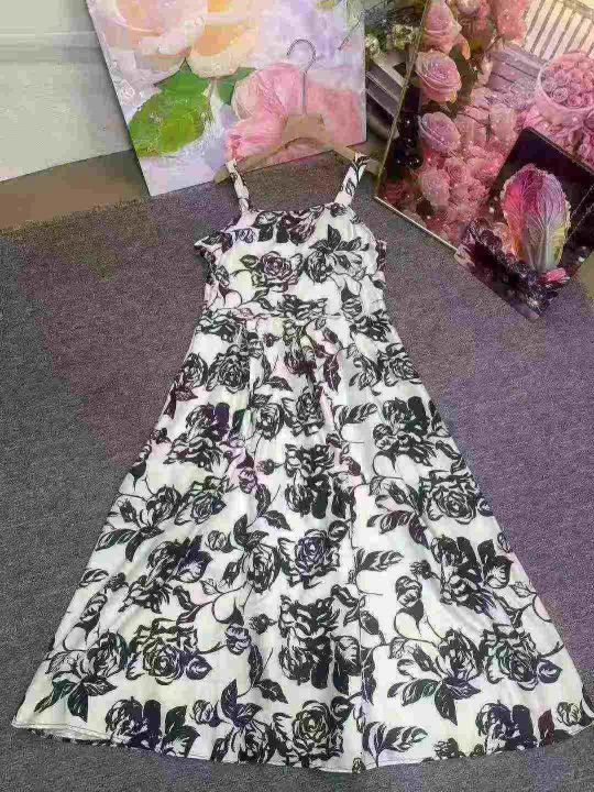2025新款春法式高级感小个子长裙碎花吊带连衣裙女夏,整款2色,1.3.5码,345件,独立包装,货品干净,9.5清,分货加1