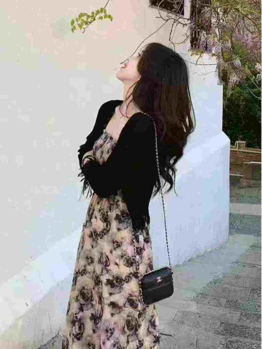 2025新款春法式高级感小个子长裙碎花吊带连衣裙女夏,...
