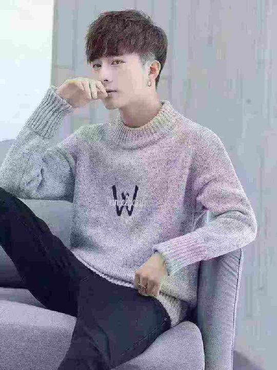 日系复古毛衣男款秋冬撞色打底衫线衣加厚潮牌宽松针织衫,独立包装,货品干...