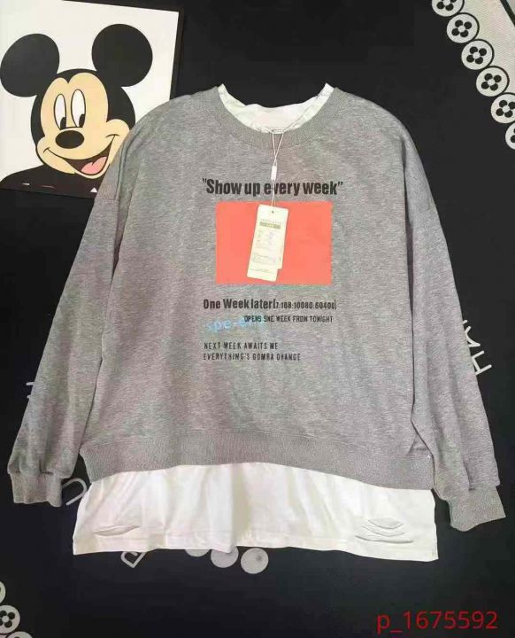 50件左右高品质精品靓妹假两件卫衣秋冬新款圆领韩版宽...