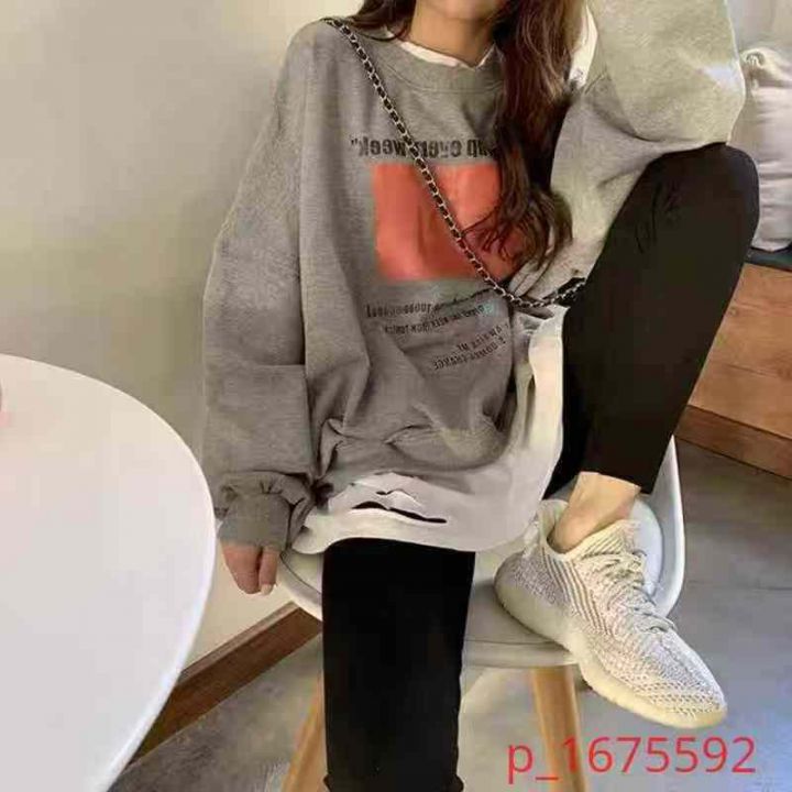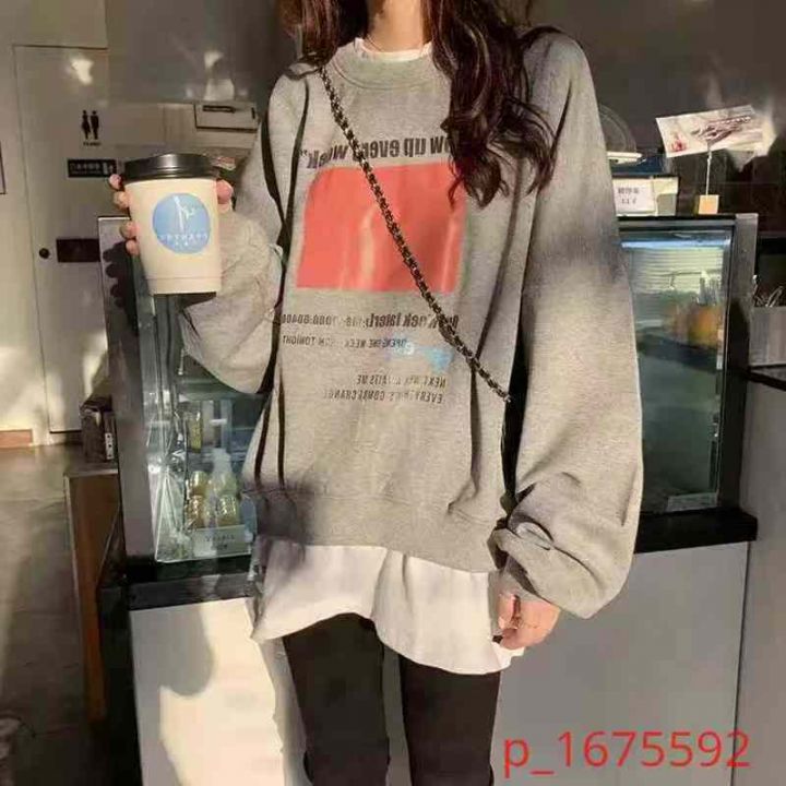 50件左右高品质精品靓妹假两件卫衣秋冬新款圆领韩版宽松慵懒风中长款上衣,商超品质!高弹力!纯棉!尺码S-L,独立包装!全清10.8 _@_@