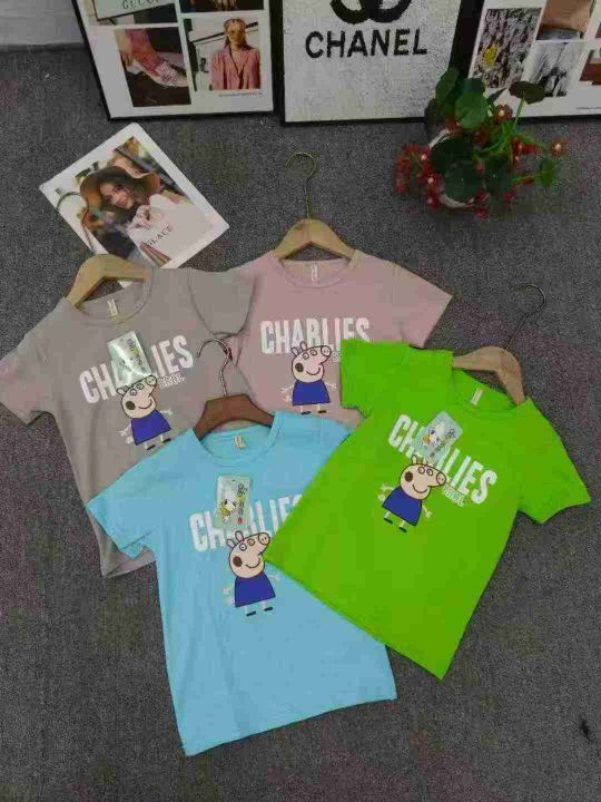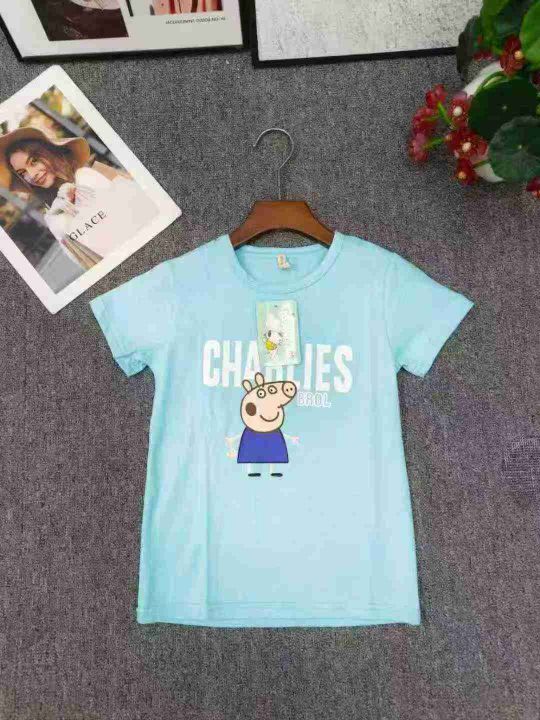小猪佩奇童装竹节棉T恤 数量370件左右 尺码90--160 整款四个色 独立包装带吊牌 货品干净整洁