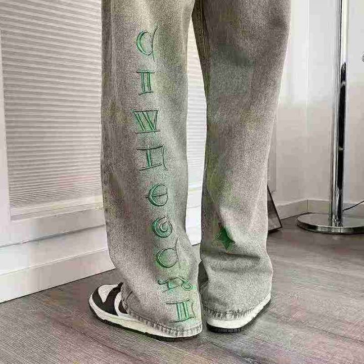 设计感水洗做旧字母刺绣直筒牛仔裤 数量330件左右 码数XS--XL 整款统一吊牌 刺绣logo 独立包装带吊牌 货品整洁质佳