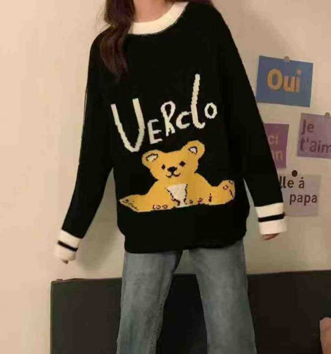 秋冬新款宽松慵懒风卡通提花圆领北极绒套头毛衣,独立...