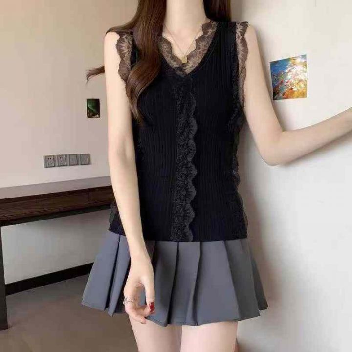 品牌原单宽松百搭设计款蕾丝拼接针织背心,独立包装带吊牌,2款多色看图,均码面料软糯舒适弹力大,1470件,全清4.9元超低价秒杀!分货加一!