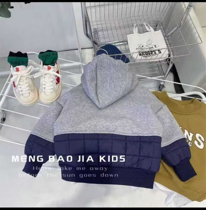 冬季新款 儿童绗棉拼接一体绒连帽卫衣帽衫男童女童韩版上衣潮,数量285件,码数80-110,独立包装,全清8.8元