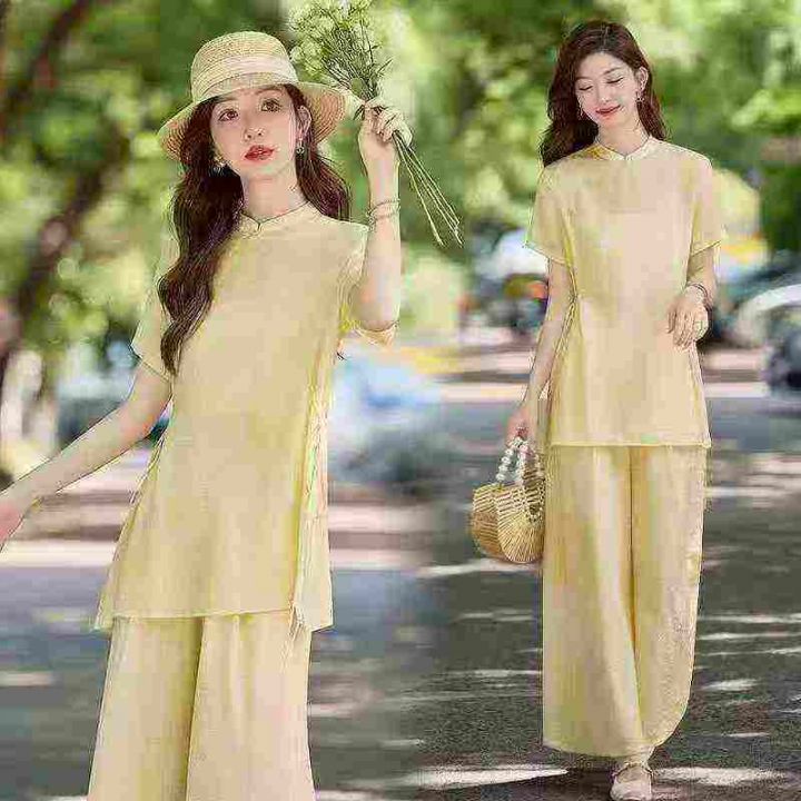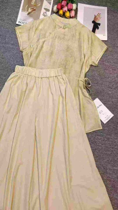 新中式气质绑带禅意上衣裙裤套装,[爱心]70套左右,款号#7186,M-L码为主,码数S-L,穿80-130斤,万佳档口货,原包装️无瑕疵,[666]实体店品质