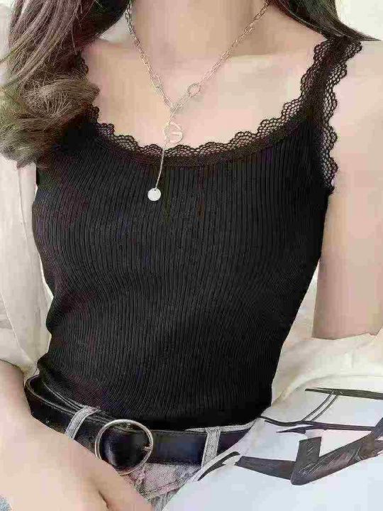 4.9清秋季新款大码西装内搭美背蕾丝边打底外穿弹力吊...