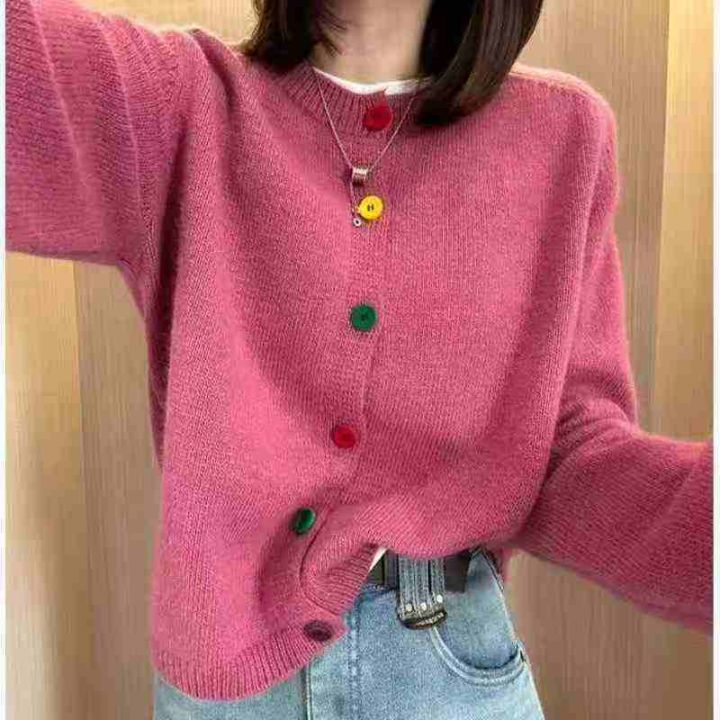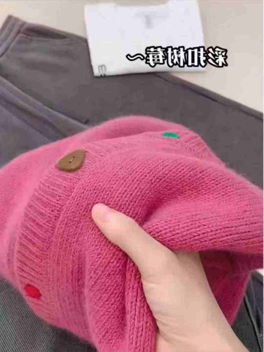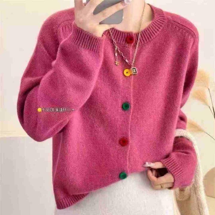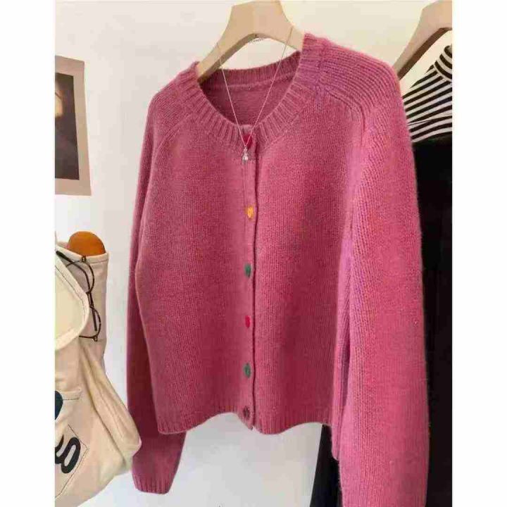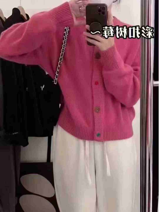 全清10.8,树莓粉色针织开衫女2025早秋装新款减龄彩扣圆领加厚毛衣,单色独立包装吊牌,72件均码,不分货