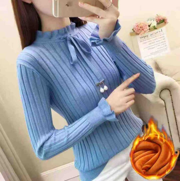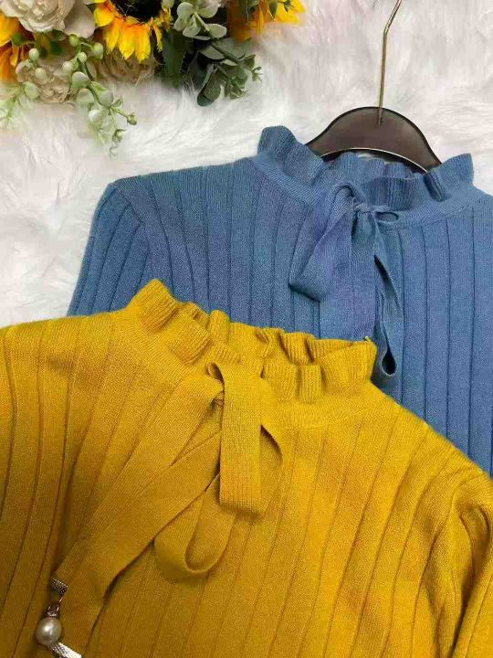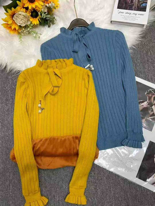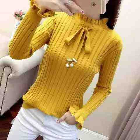 秋冬季新款蝴蝶结韩版弹力修身木耳边包芯纱套头毛衣,有加绒和不加绒,独立包装,均码面料软糯厚实弹力大,100件,全清7.9元超低价秒杀!