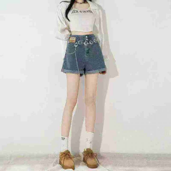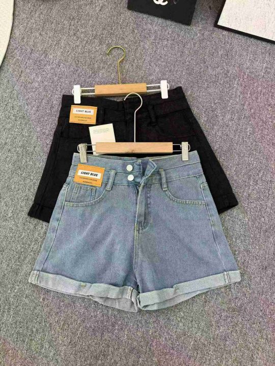 清8.8分货➕1黑色双扣高腰卷边牛仔短裤女2025夏季新款...