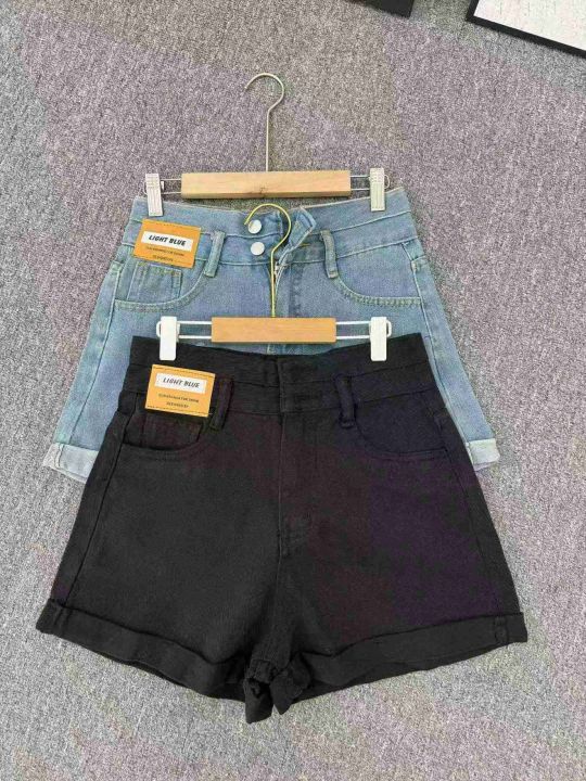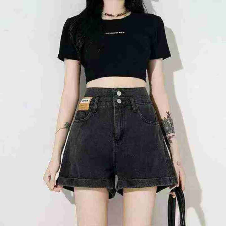 黑色双扣高腰卷边牛仔短裤女2025夏季新款宽松显瘦百搭阔腿热裤子,数量316,码数XS-XL,独立包装,货品干净,黑色为主。