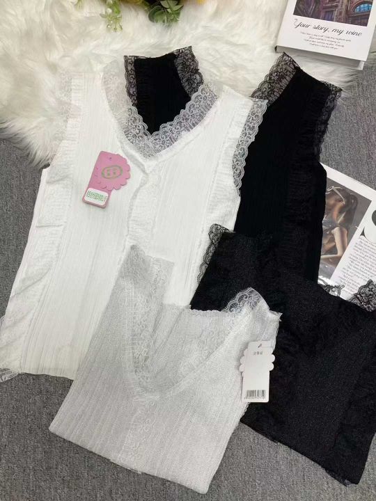 品牌原单宽松百搭设计款蕾丝拼接针织背心,独立包装带...