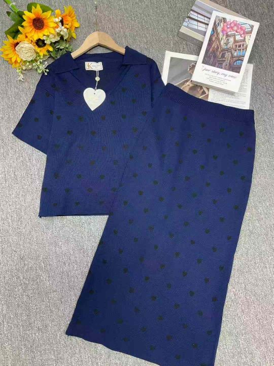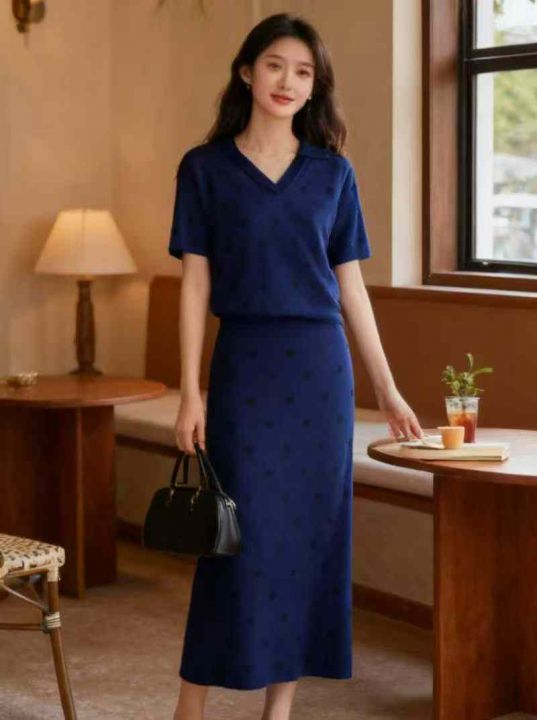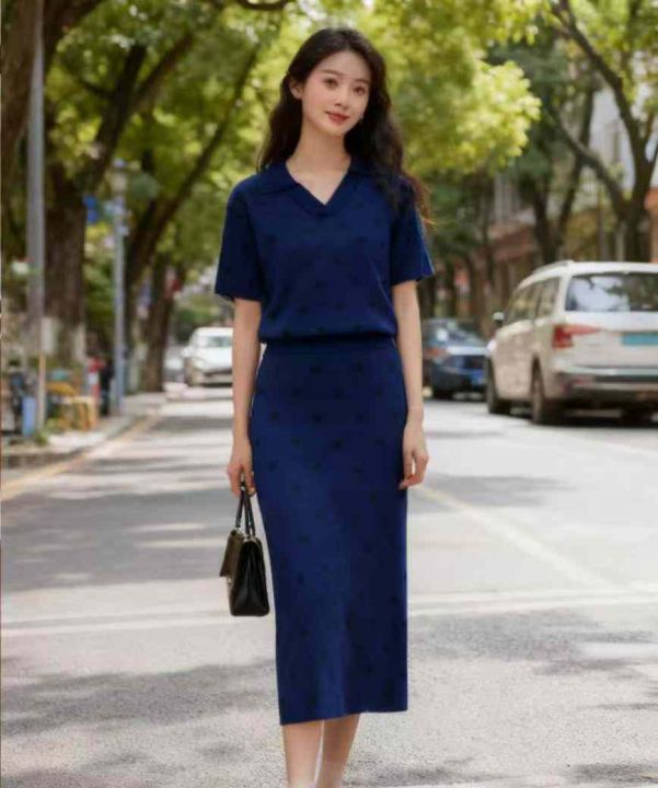 捡漏款,品牌原单早秋新款Polo领针织短袖T+针织半身长...