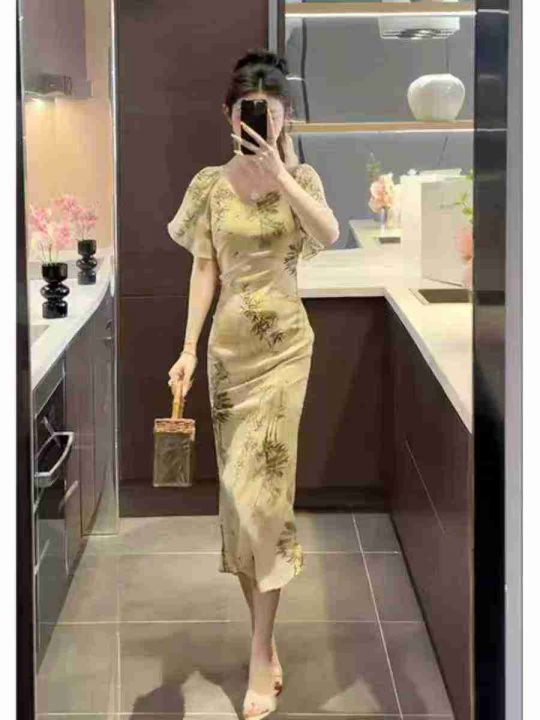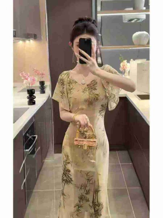 上新全清:14.9一件新中式国风水墨画气质高级连衣裙,...