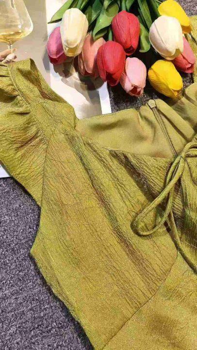 法式气质V领掐腰系带小飞袖连衣裙,[爱心]50件左右,款号#7196,码数M-XL,穿80-130斤,万佳档口货,原包装️无瑕疵,[666]实体店品质