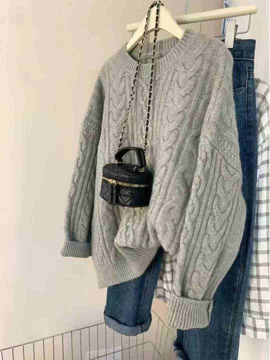 全清9.9,复古套头麻花毛衣女秋冬2025新款针织衫宽松慵懒风软糯外穿厚上衣,独立包装吊牌,43件均码,不分货