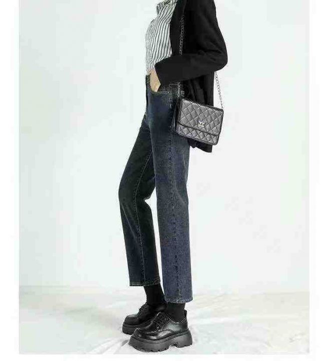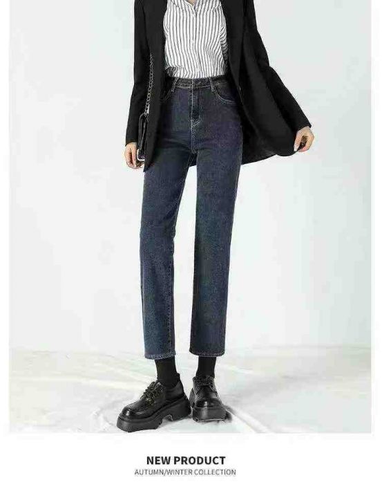 秋季新款高弹力洗水棉复古蓝牛仔烟管裤,独立包装,码...