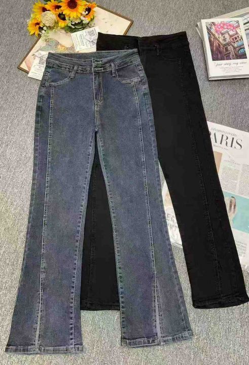 秋季新款高弹力微胖mm洗水棉网红爆款开叉牛仔喇叭裤,独立包装带吊牌,码数S--4XL码(码数清单看图),1572件,全清9.9元超低价秒杀!分货加一!