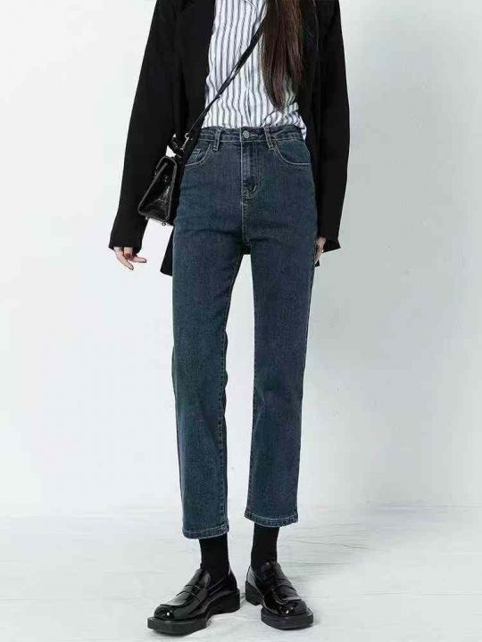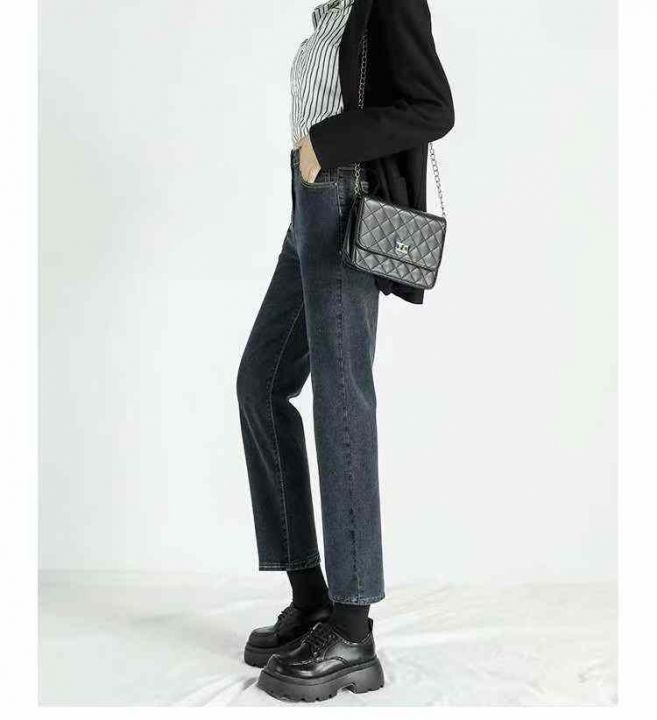 秋季新款高弹力洗水棉复古蓝牛仔烟管裤,独立包装,码...