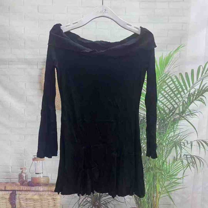6.5元全清,辣妹风一字领交叉长袖连衣裙女秋季新款黑色修身显瘦时尚上衣短裙,独立包装,均码L,175件左右