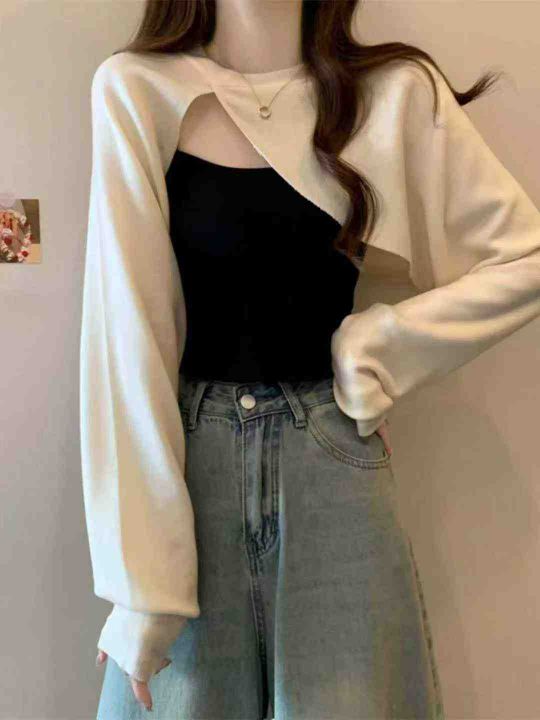 春秋款新款韩版显瘦简约纯色慵懒风包芯纱针织套头毛衣...