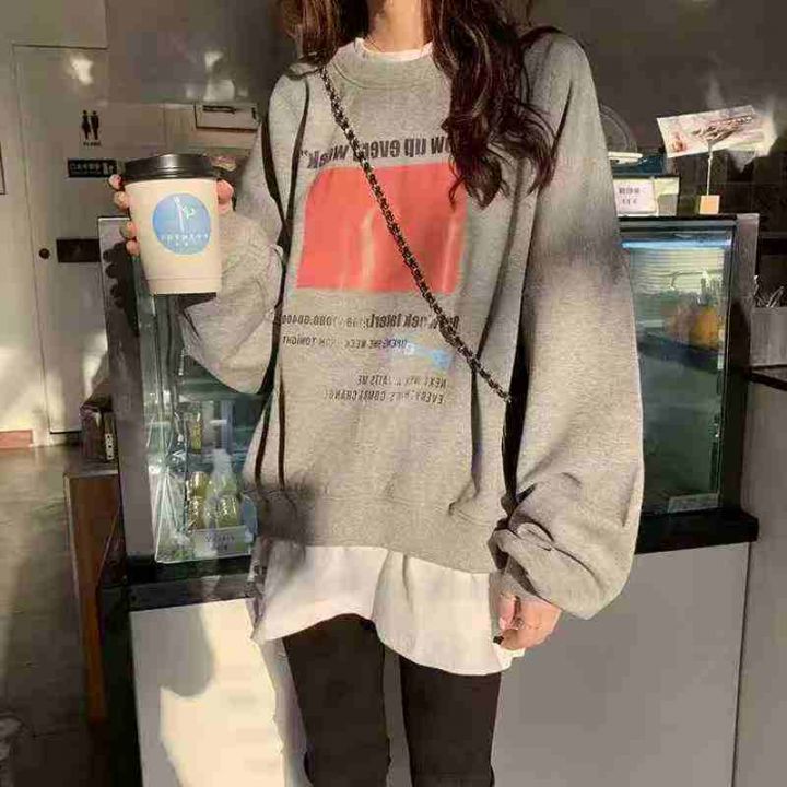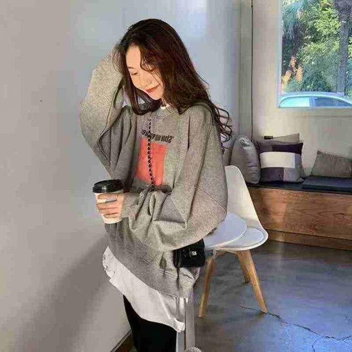 50件左右高品质精品靓妹假两件卫衣秋冬新款圆领韩版宽...