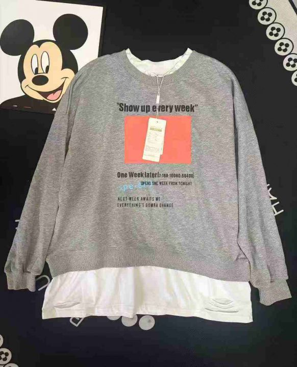 50件左右高品质精品靓妹假两件卫衣秋冬新款圆领韩版宽松慵懒风中长款上衣,商超品质!高弹力!纯棉!尺码S-L,独立包装!全清10.8