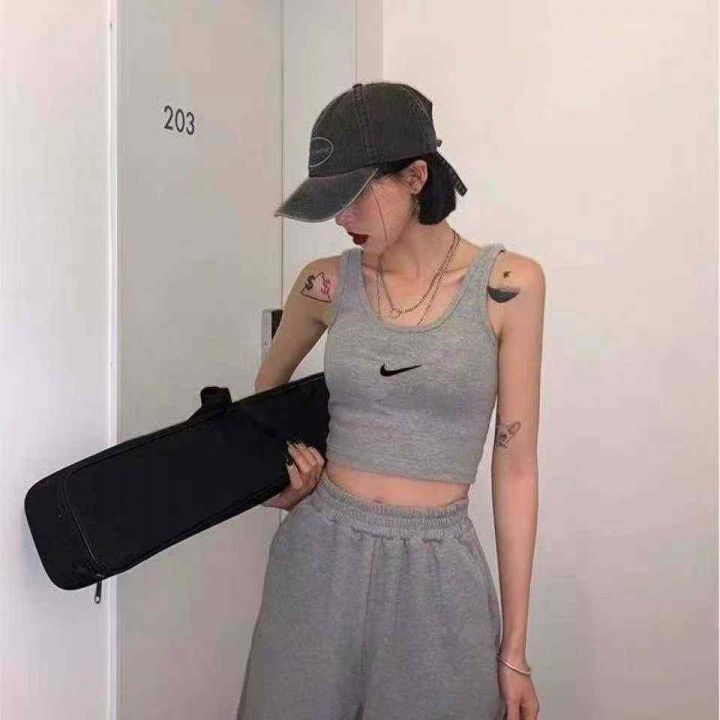 103件网红辣妹棉吊带背心女,内搭漏肚脐打底衫,修身运动短款无袖上衣,独立包装,码数SML