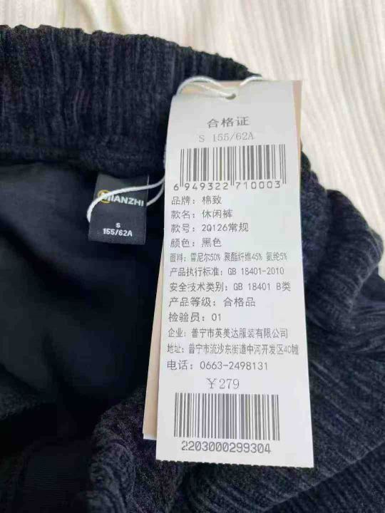 雪尼尔速脚裤,数量:267条,码数:S-M-L-XL-2XL,有独立包装,6.9元清...