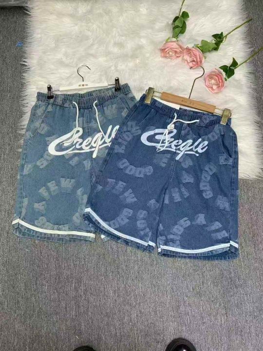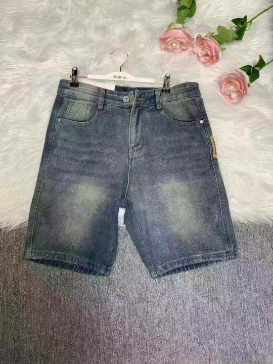 美式潮牌印花牛仔短裤男士夏季高街宽松直筒五分裤90件,独立包装带吊牌,尺...